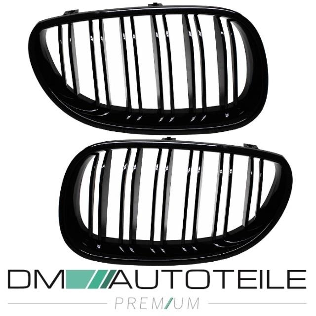 Doppelsteg-Kühlergrill für BMW 5er E60 / E61 auch LCI in Schwarz Glanz